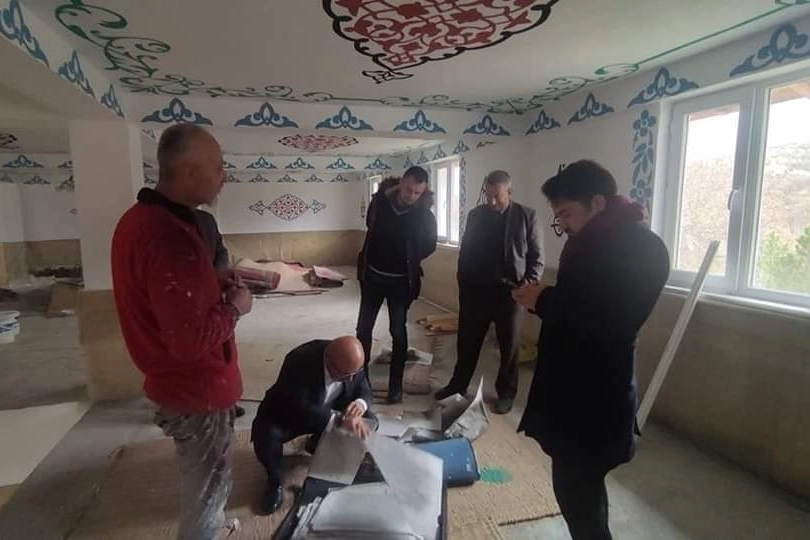 Tarihi Cuma pazarı Cami Zemin ve Duvar Ahşap Kaplaması ile Hat ve Kalem İşçiliğinde Sona Doğru gelindi. İlçemize için tüm gücümüzle çalışıyoruz, herşey büyükorhan için dedi.