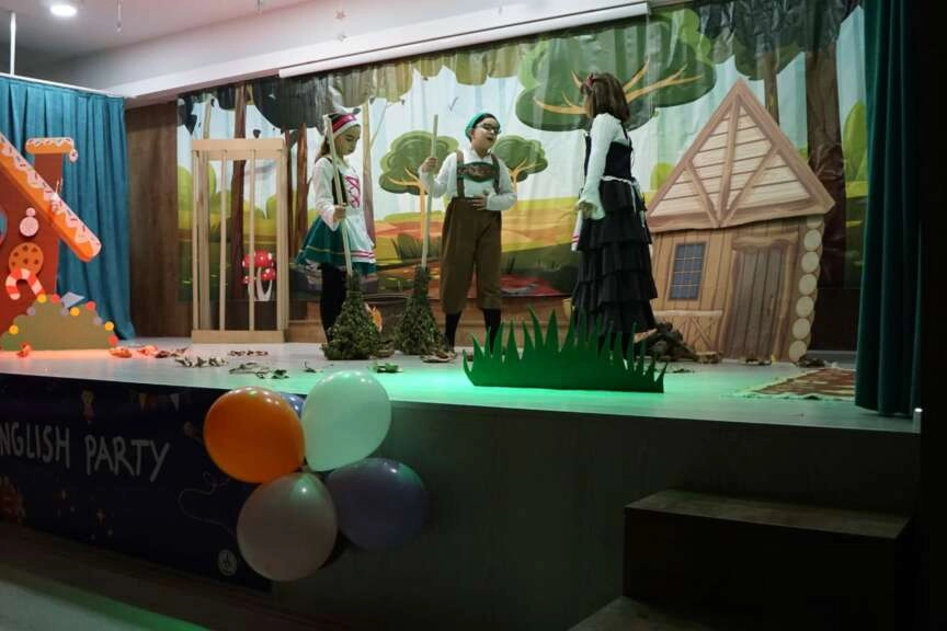 Koro ve solo performans ile başlayan ardından dans gösterisi ve klasik Hansel ile Gretel hikayesini tiyatro ya dönüştürerek İngilizce olarak icra ettikleri piyes ile bitiren öğrenciler büyük bir coşku ile karşılandı.