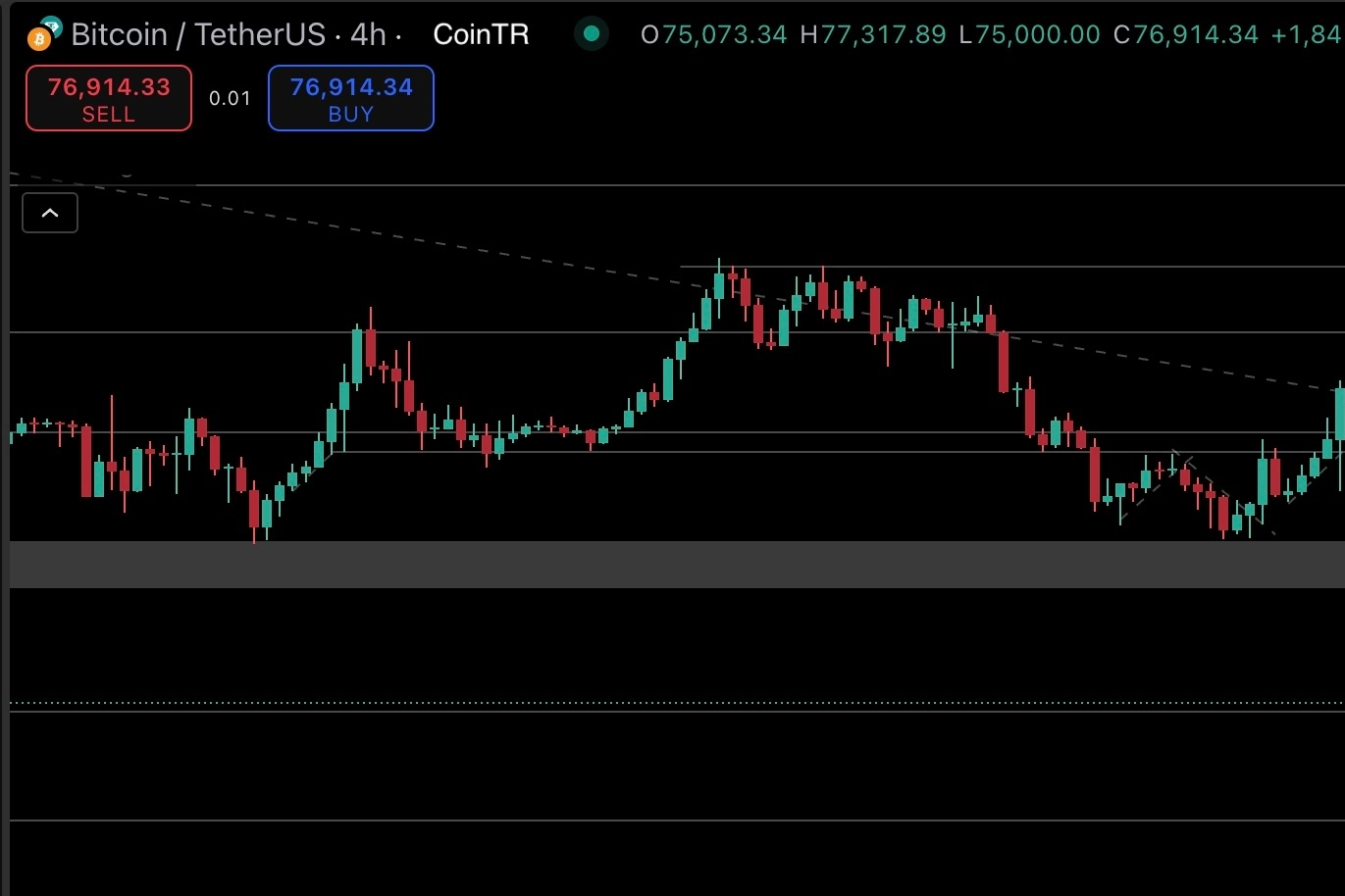 ABD’nin Çin’e yönelik gümrük tarifesi açıklamasının ardından Bitcoin, 80.350 dolardan gelen sert satışlarla 74.600 dolara kadar geriledi. Bu bölgeden aldığı destekle toparlanan BTC, analiz hazırlanırken destek bölgesini üzerinde işlem görüyor. 76.673 dolar üzerinde kalıcılık sağlanması halinde 78.000 dolar direnci hedeflenebilir. Bu seviyenin aşılması, fiyatı yeniden 80.000 dolar bandına ve ardından 81.200 dolardaki likidite bölgesine taşıyabilir. Ancak 76.673 desteğinin kaybedilmesi durumunda, sırasıyla 74.400 – 73.769 ve 69.000 dolar seviyelerine doğru geri çekilme riski bulunuyor. Açık pozisyonlar 173.699K seviyesinde ve hacim 24.014K BTC ile toparlanma alımlarla destekleniyor. Fonlama oranı -0.0002 ile baskının sürdüğünü gösterirken, sınırlı likidasyon verisi panik satışlarının henüz başlamadığını işaret ediyor. Genel görünüm temkinli pozitif; fiyatın 76.673 üzerinde kalıp kalamayacağı kısa vadeli yön açısından belirleyici olacak.
