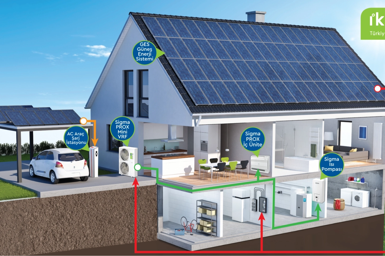 İklimsa, güneş enerji sistemleriyle birlikte ısı pompası, elektrikli araç şarj istasyonu ve güneşten üretilen enerjiyi 7/24 kazanca dönüştüren enerji depolama sistemlerini içeren entegre ve uçtan uca enerji çözümleri geliştiriyor. Güneş enerjisiyle üretilen elektriğin ısı pompası sistemlerinde kullanılması, konut ve işletmeler için önemli maliyet avantajı sağlarken çevresel sürdürülebilirliğe katkı sunuyor. Bu entegre enerji çözümleri, karbon salınımını azaltarak yüksek verimlilik ve uzun vadeli ekonomik kazanımlar sağlayarak kurumların stratejik enerji yönetimi hedeflerini destekliyor.