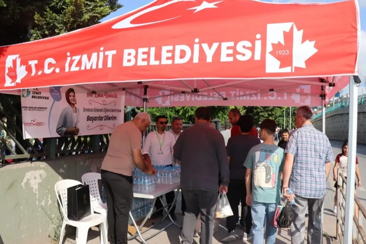 İzmit Belediyesi öğrencilerin ve ailelerin sınav heyecanına bu sene de ortak oldu. LGS, YKS ve KPSS sınavlarında okul önlerinde kurulan satanlarda binlerce su ve kek ikramında bulunularak öğrencilere ve ailelerine başarı dilekleri iletildi.