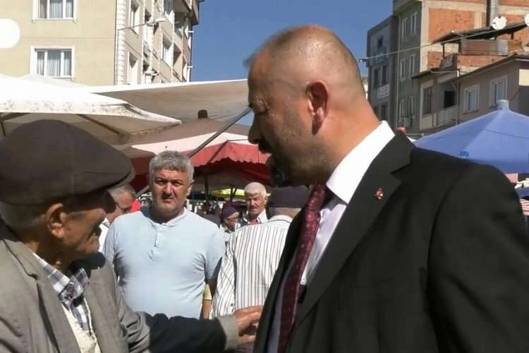 Dua sonrasında Orhaneli Belediye Başkanı Ali Aykurt, pazar esnafı ve vatandaşlara çay ikram edip sohbet etti.