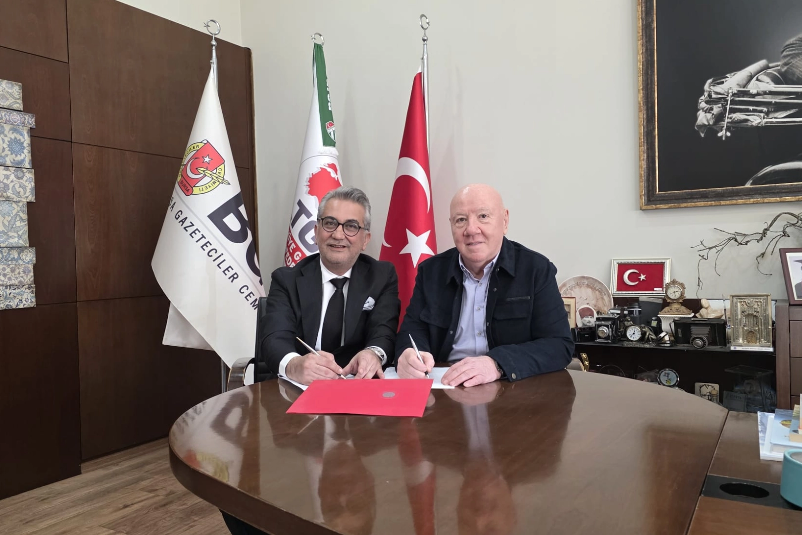 BGC Merkezi’nde, Bursa Gazeteciler Cemiyeti Başkanı Nuri Kolaylı ile NEV Sağlık Grubu Yönetim Kurulu Başkanı Dr. Ergin Kopal tarafından imzalanan yeni protokole göre, cemiyet üyeleri ve birinci derece yakınları sağlık hizmetlerinden yüzde 20 ile yüzde 50 arasında değişen oranlarda indirimli yararlanacak.