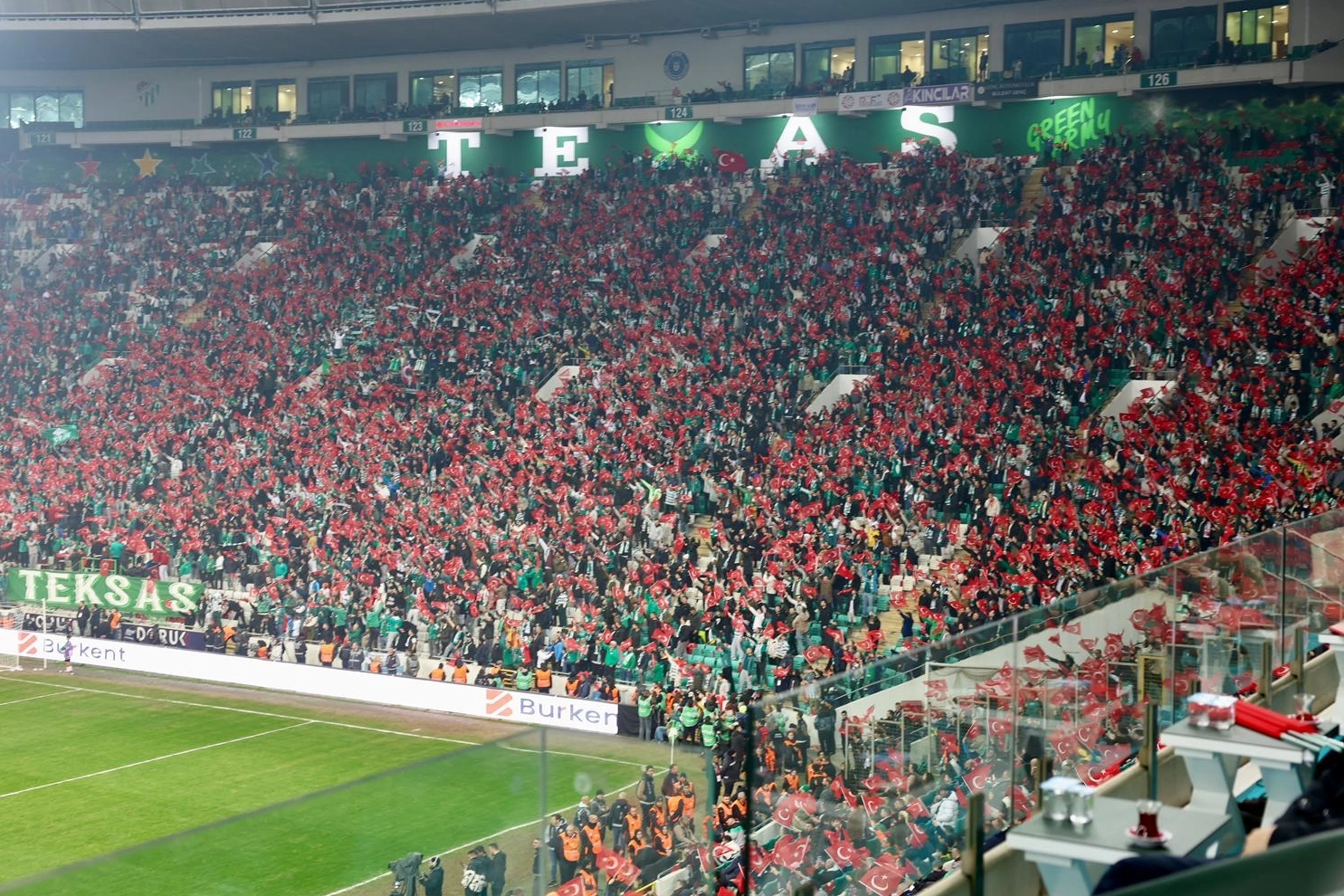 Bursa Büyükşehir Belediyesi, Bursaspor–Yeni Mersin İdman Yurdu karşılaşması öncesinde Atatürk Spor Kompleksi Matlı Stadyumu tribünlerini Cumhuriyetimizin ve milli bağımsızlığımızın en güçlü simgelerinden biri olan Türk bayraklarıyla donattı. Dağıtılan bayraklarla stadyum adeta kırmızı-beyaza bürünürken, Bursasporlu taraftarların elinde yükselen 40 bin Türk bayrağı tribünlerde görsel bir şölen oluşturdu. Vatandaşlar, milli değerlere sahip çıkmanın gururunu hep birlikte yaşadı. Bursasporlu taraftarlar, bayrak dağıtımıyla milli birlik ve beraberliğe değer katan bu organizasyon dolayısıyla Bursa Büyükşehir Belediye Başkanı Mustafa Bozbey’e teşekkür etti.
