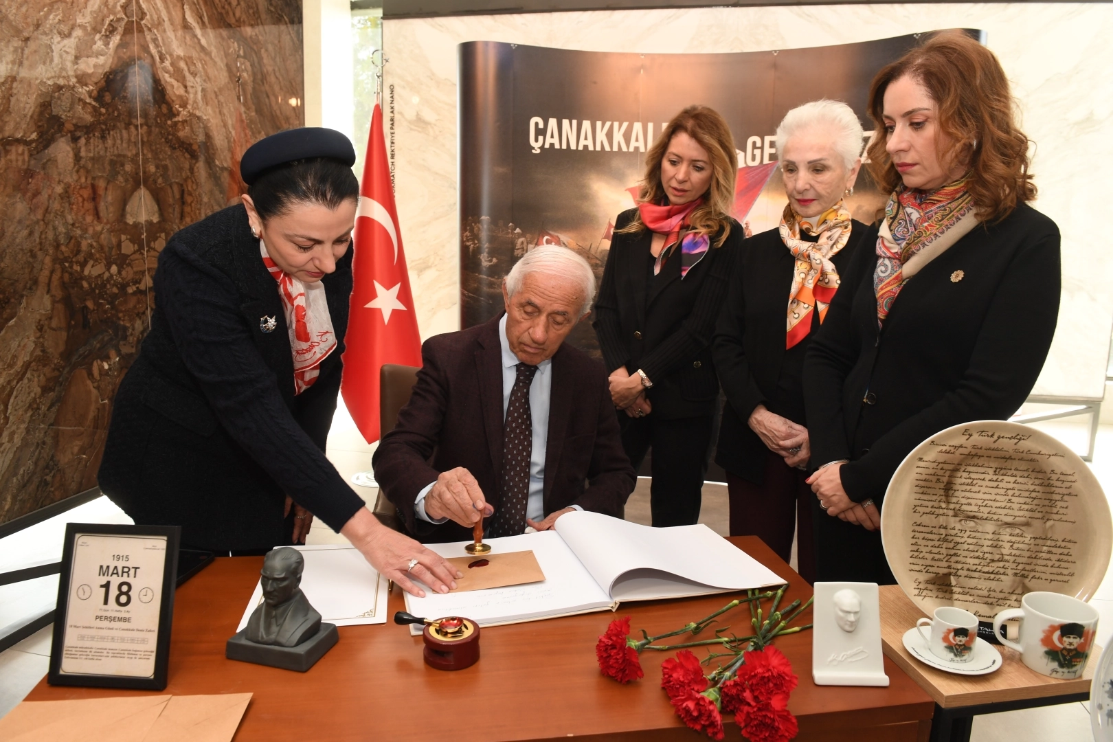 Kütahya Porselen, 18 Mart Çanakkale Zaferi’nin yıl dönümünde düzenlediği anlamlı törenle, milletimizin hafızasında derin izler bırakan bu büyük destanı ve aziz şehitlerimizi saygı, minnet ve rahmetle andı. Kütahya Yönetim Binası’nda gerçekleştirilen törene; NG Grup Kurucu Başkanı Nafi Güral, eşi Sayın Gülsüm Güral, Kütahya Porselen Yönetim Kurulu Başkanı Sema Güral Sürmeli, Kütahya Porselen Yönetim Kurulu Başkan Yardımcısı Gülden Güral, NG Hotels Yönetim Kurulu Başkanı Hediye Güral Gür ve çalışma arkadaşları katıldı.