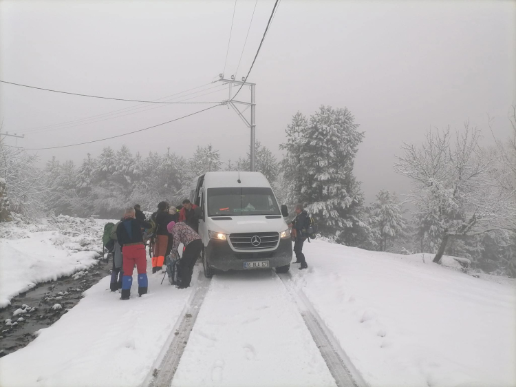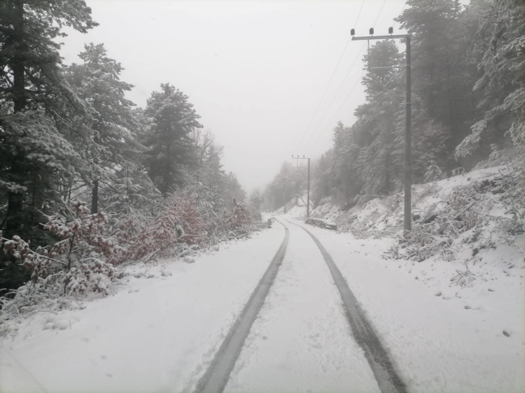 Kar yağışı nedeniyle bazı sürücüler araçlarına zincir takarak ilerlemek zorunda kaldı. Yetkililer, bölgeden geçecek sürücüleri dikkatli olmaları ve tedbirli şekilde seyahat etmeleri konusunda uyardı.