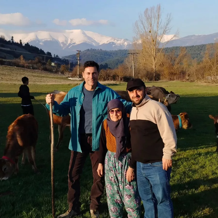 Köy muhtarı Sinan Yalçın'dan köyün geçmişiyle ve Snyjersey süt çiftliği ile ilgili bilgiler alan Kıvanç Kasabalı, Gököz köyü mahalle muhtarı Sinan Yalçın'a misafirperverliğinden dolayı ailesine ve kendisine teşekkür etti.