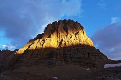 Hazırlıklarını tamamlayan yürüyüşçüler, günün ilk ışıklarıyla birlikte Aladağlar’ın en yüksek zirvelerinden olan Emler Zirvesi’ne (3723 m.) doğru yola koyuldu.