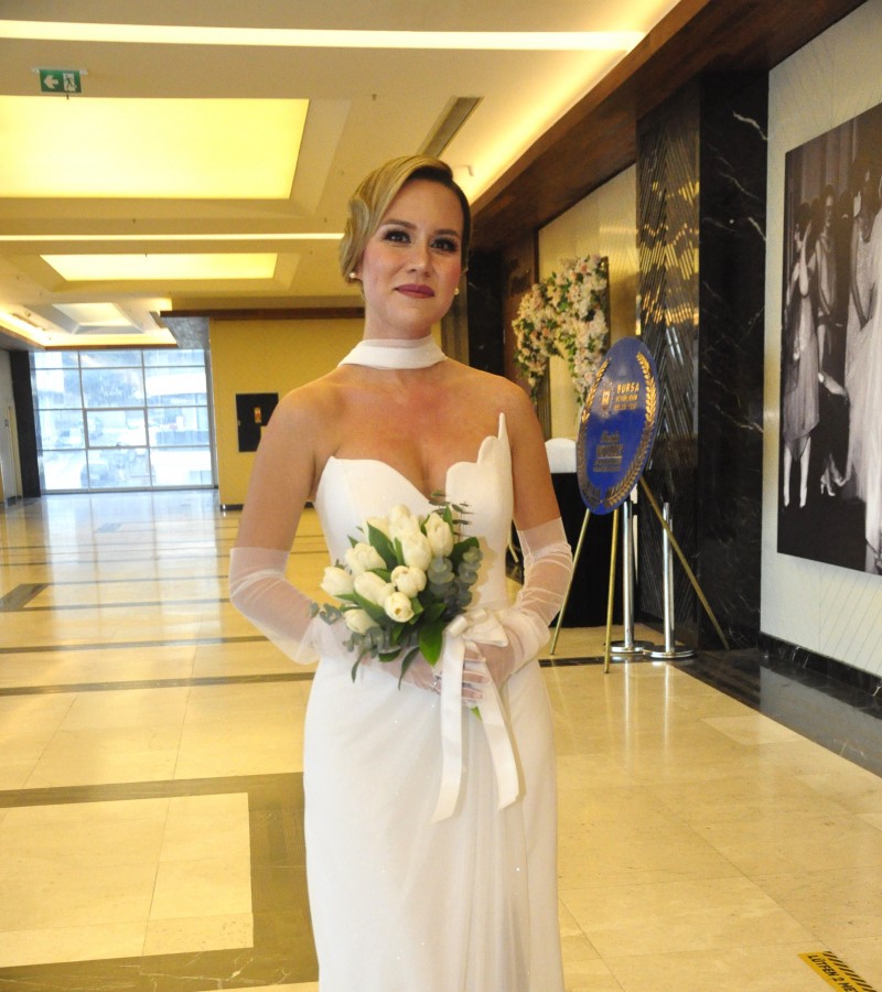 Nikah töreninde Gelin hanım Elvan Kızılay'ın güzelliği göz kamaştırıyordu.