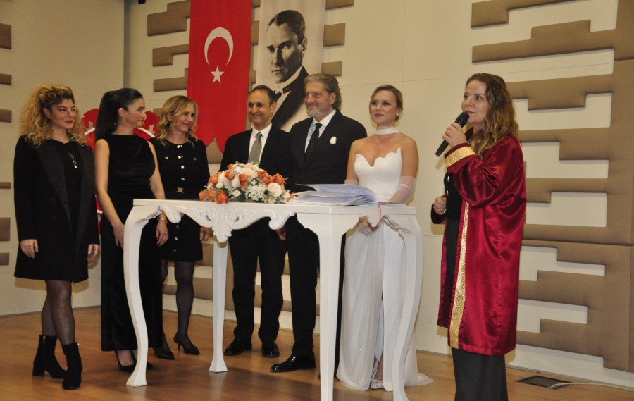 Çok sayıda davetlinin katıldığı nikah töreninde çiçeği burnunda yeni evlilerin nikah şahitliklerini Yasemin Esra Üçcan, Pelin Hasırcıoğlu, Ömer Önen ve Ayşegül Orhan alkışlar arasında yaptı.